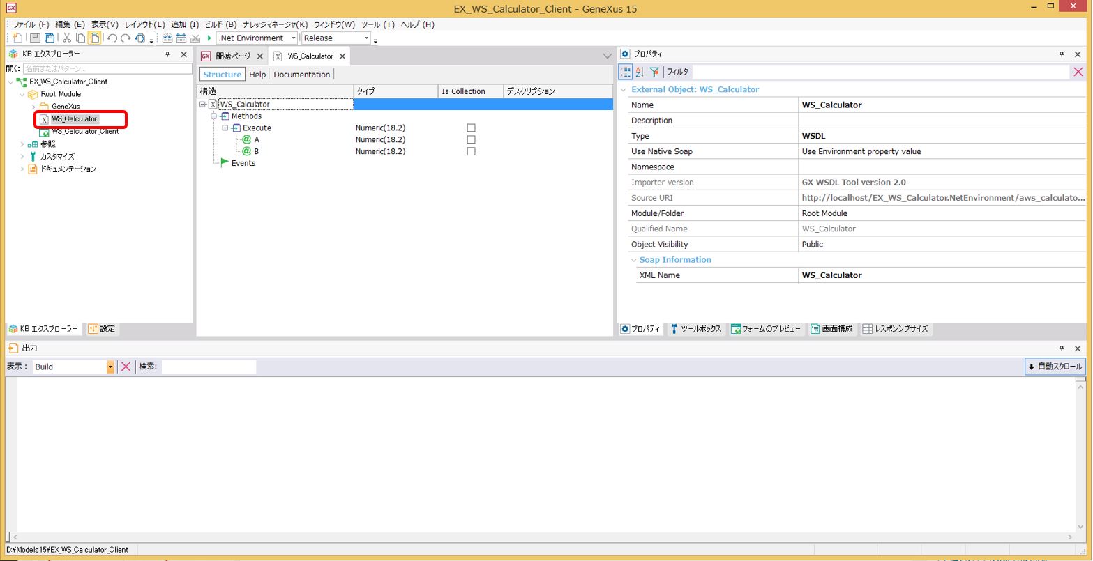 「インポート」の押下により、外部オブジェクト「WS_Calculator」が自動生成されます。